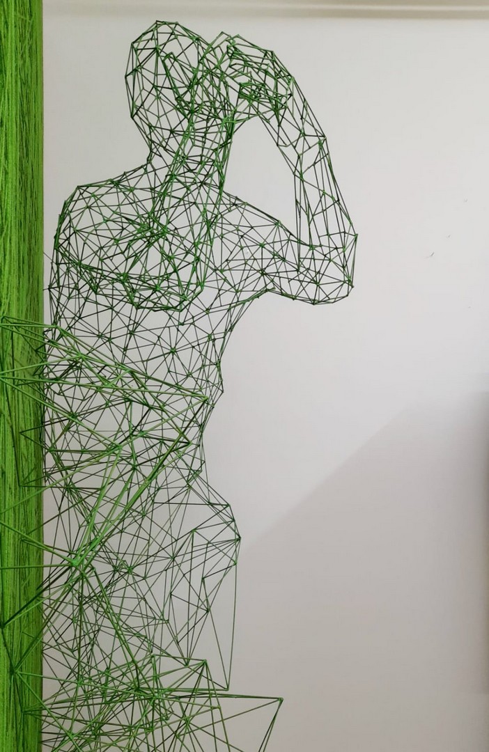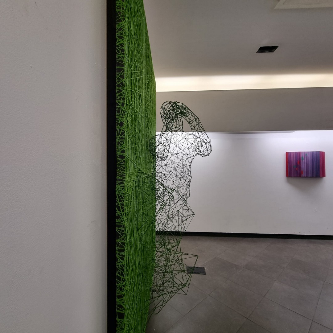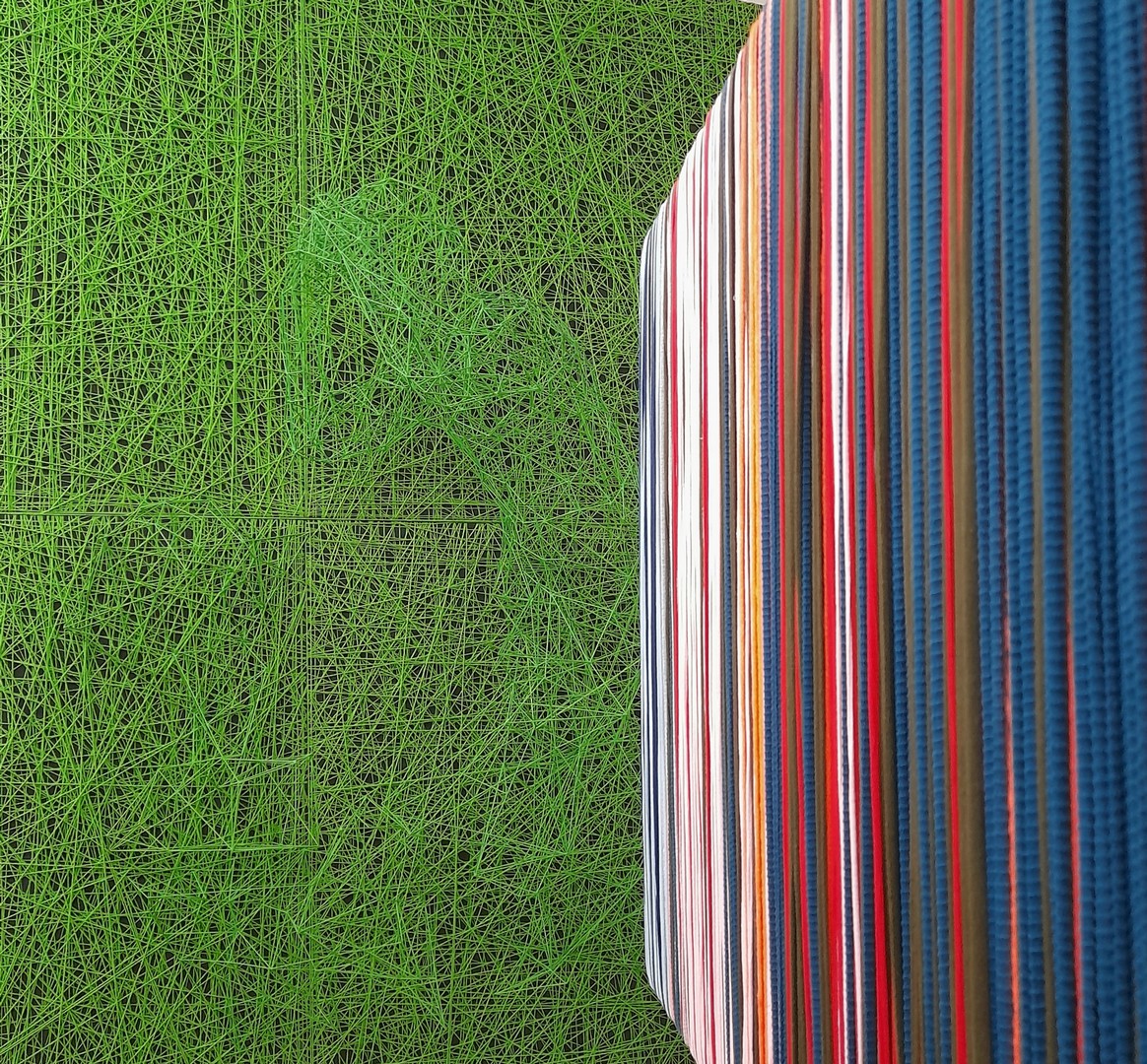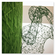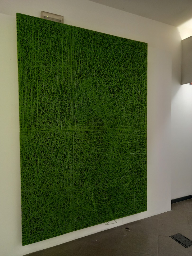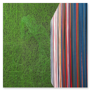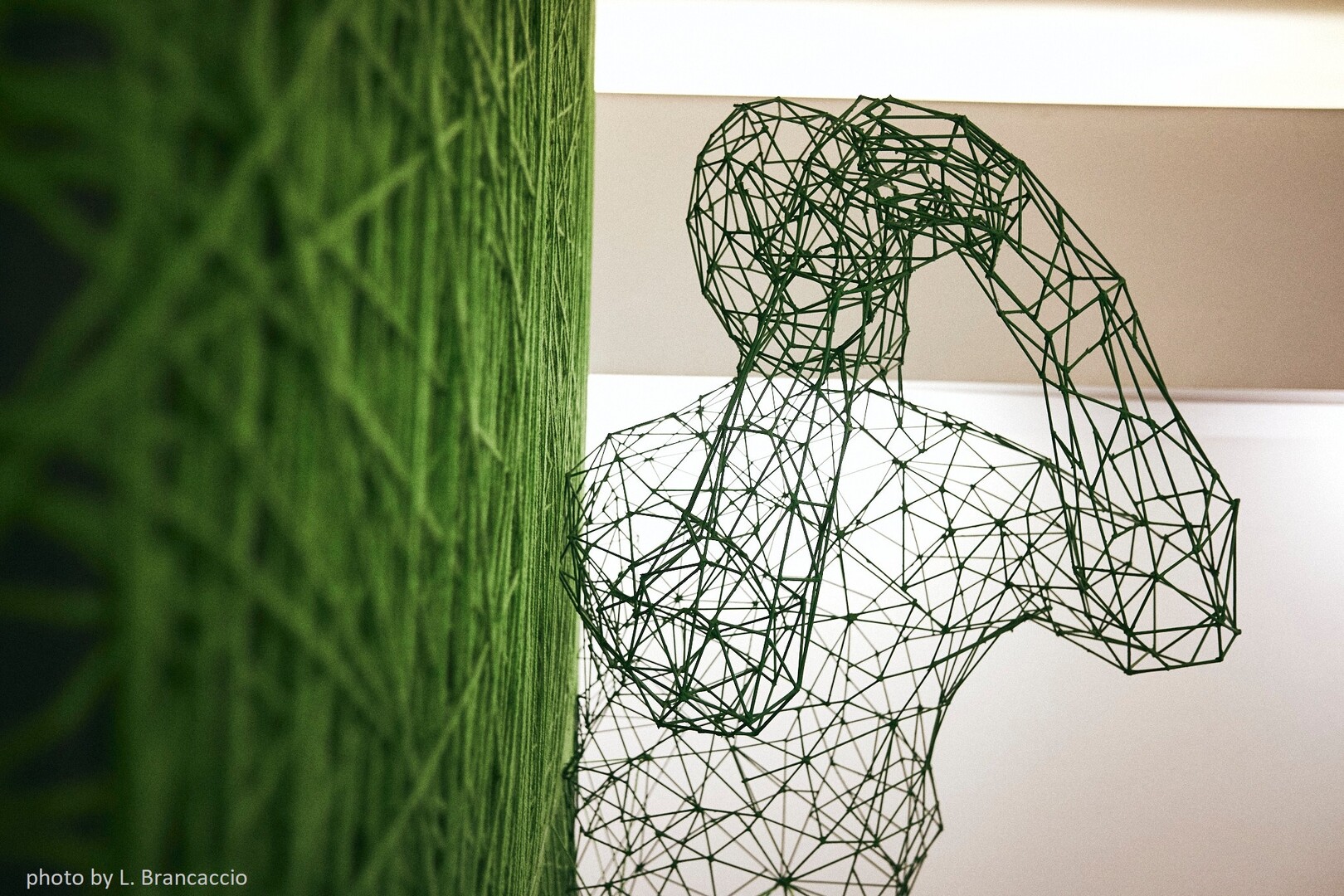 Tecnica mista: lana sintetica, legno, acrilici su pannelli xps
