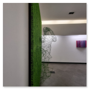Tecnica mista: Fettucce di tessuto, fili acrilici, specchi su legno