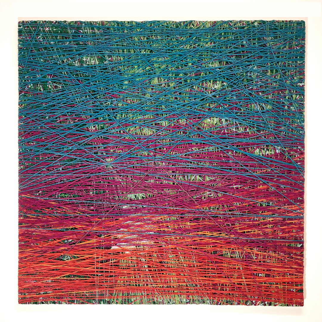 Ri_quadro rosso - 2023 - Tecnica mista ( lana sintetica, acrilico su legno )