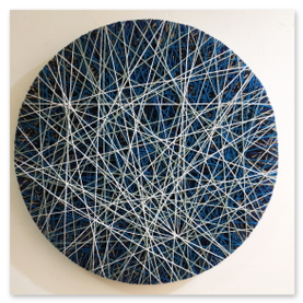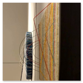 Mutamenti - 2023 - Tecnica mista ( fili acrilici, specchi, inserti in plastica, su legno)