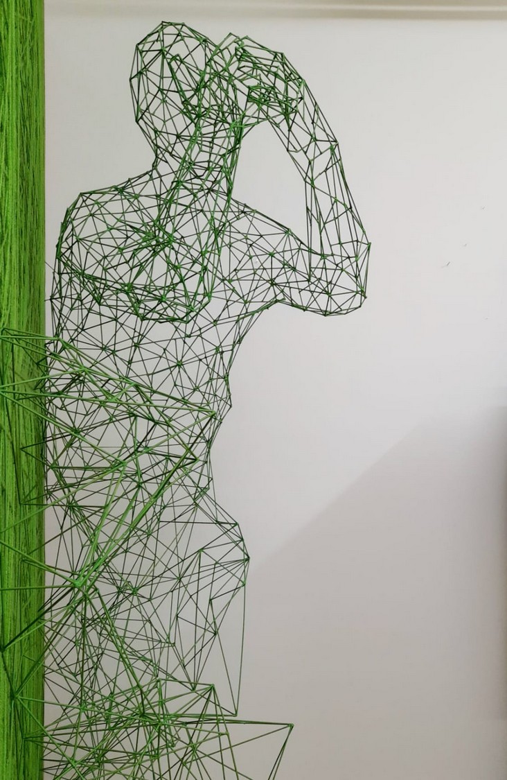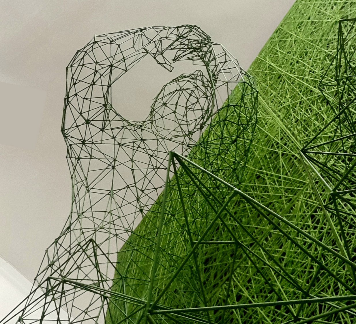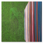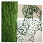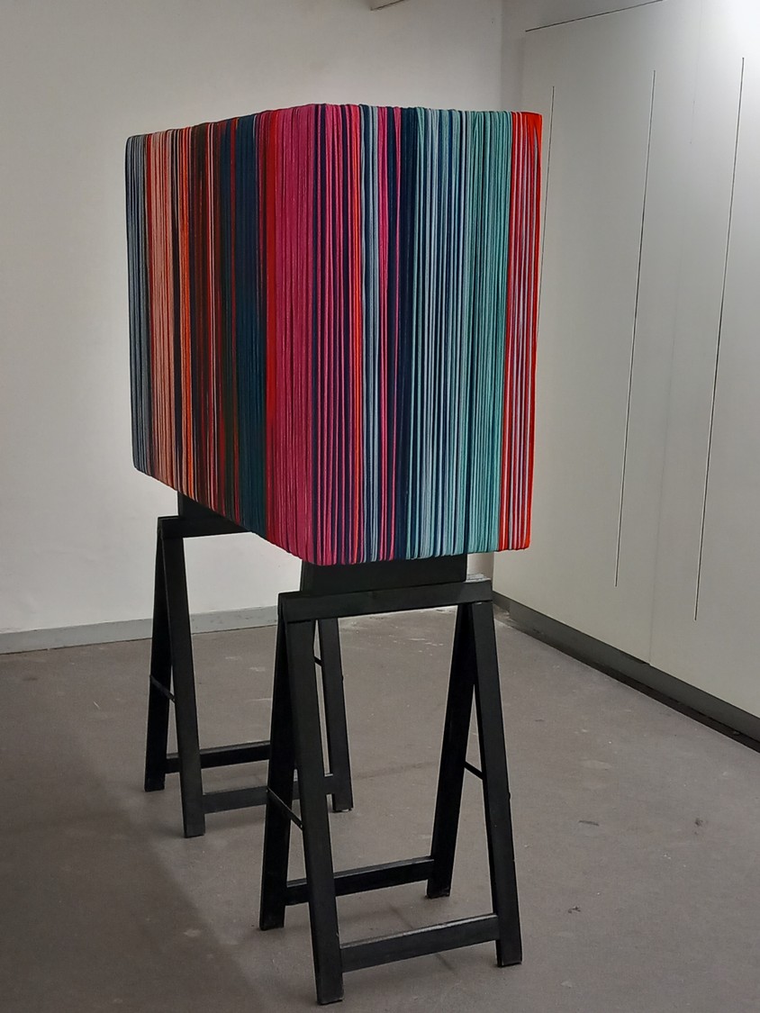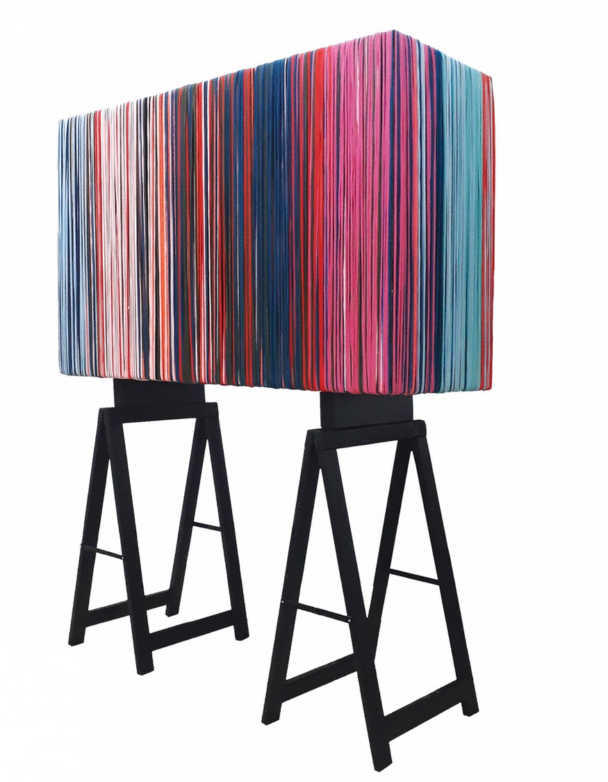 Tecnica mista: lana sintetica, legno, acrilici su pannelli xps