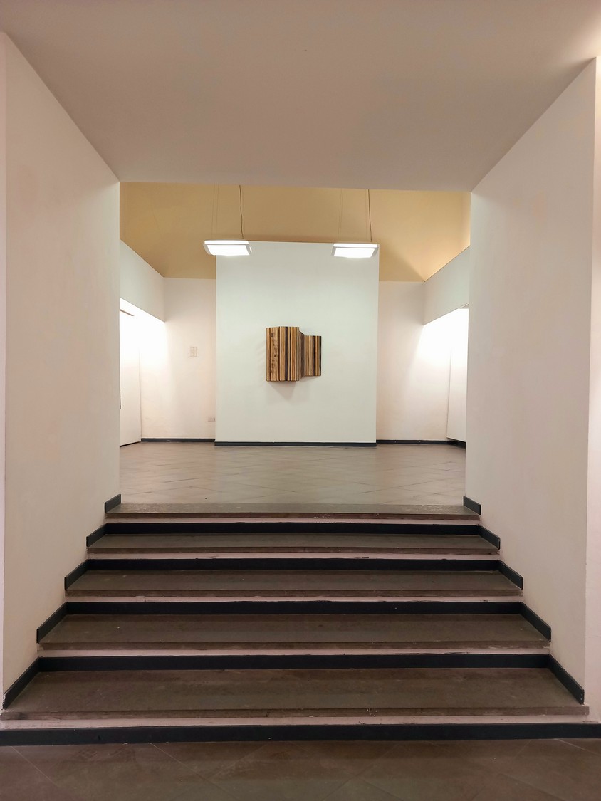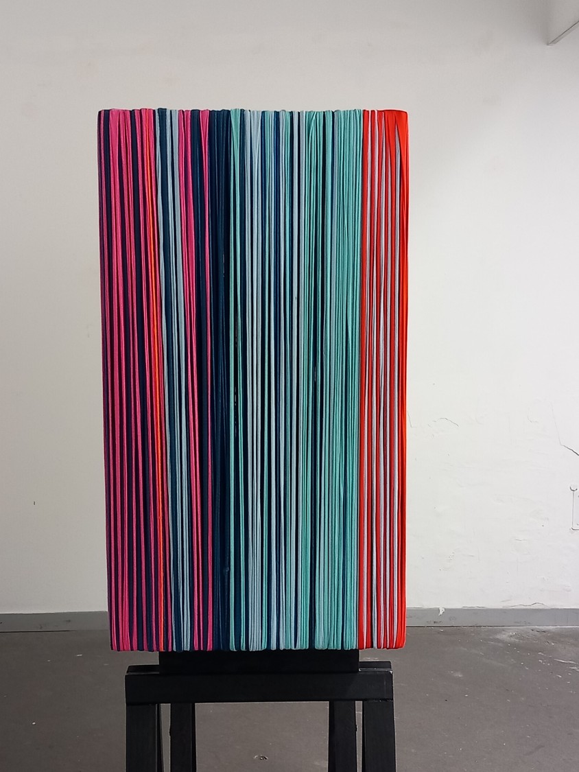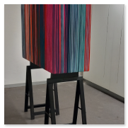 Tecnica mista: fettucce di tessuto, lana sintetica, legno.