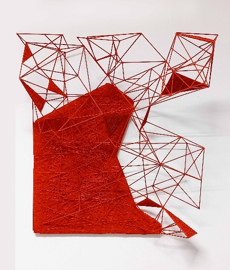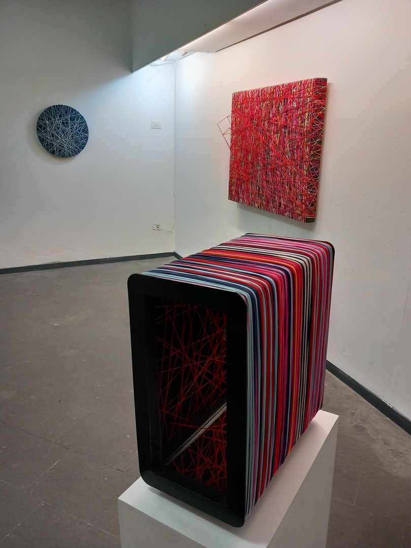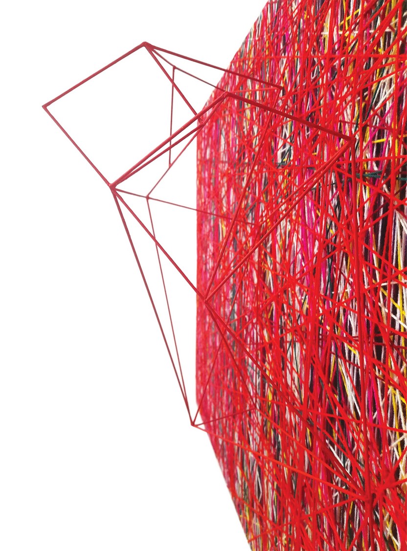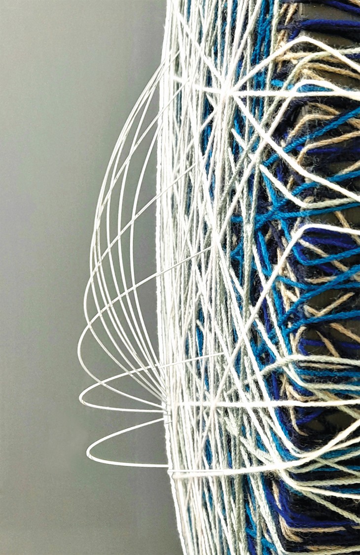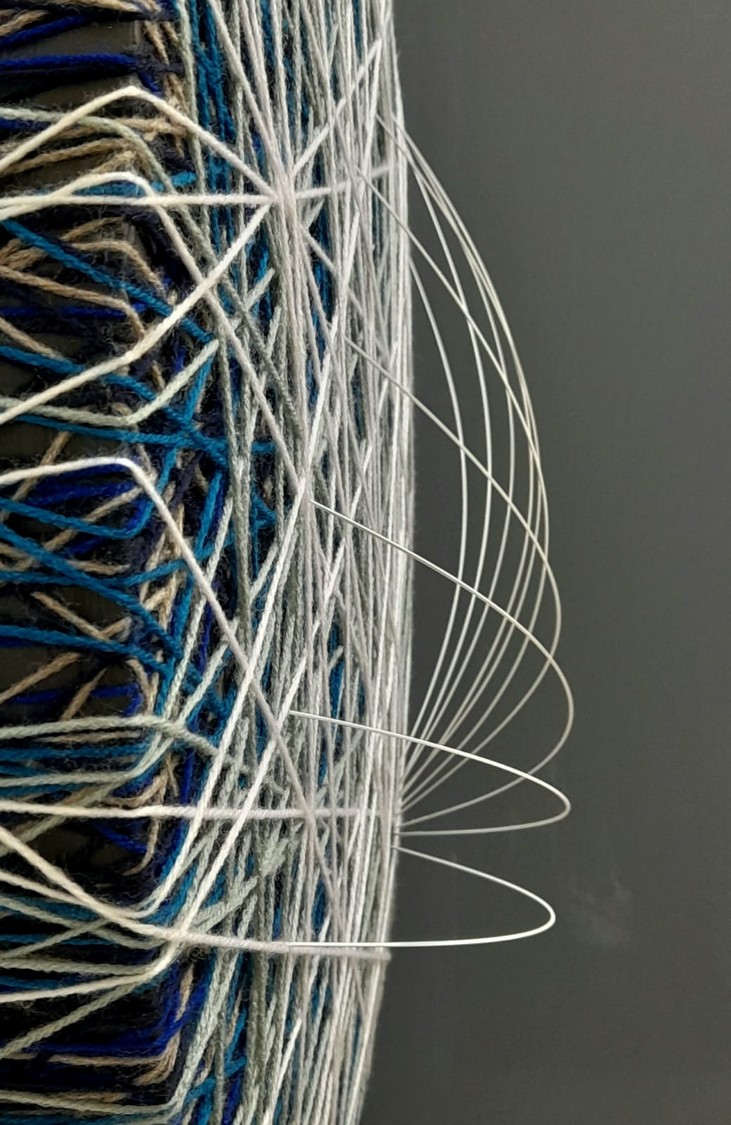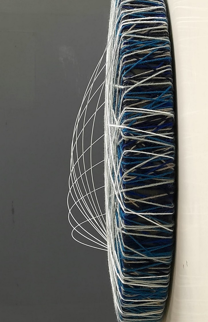 Tecnica mista: fili acrilici,di cotone e d'acciaio, su pannello xps e legno