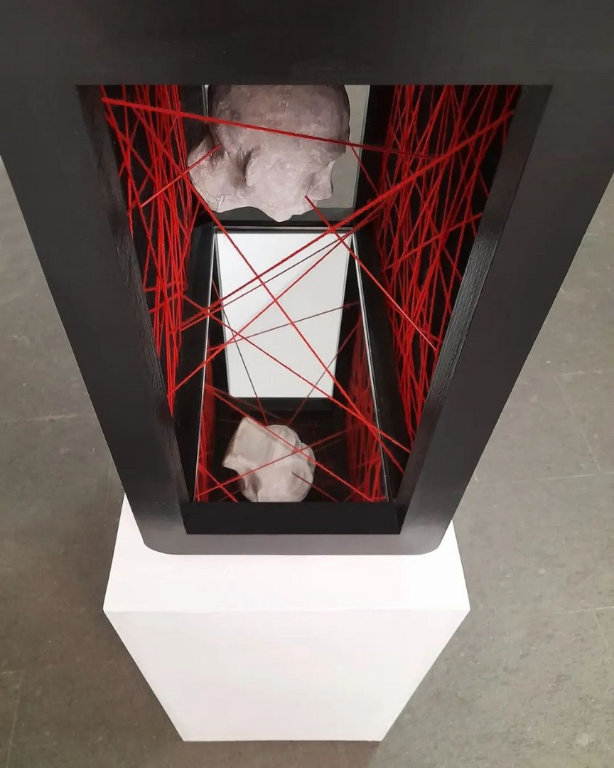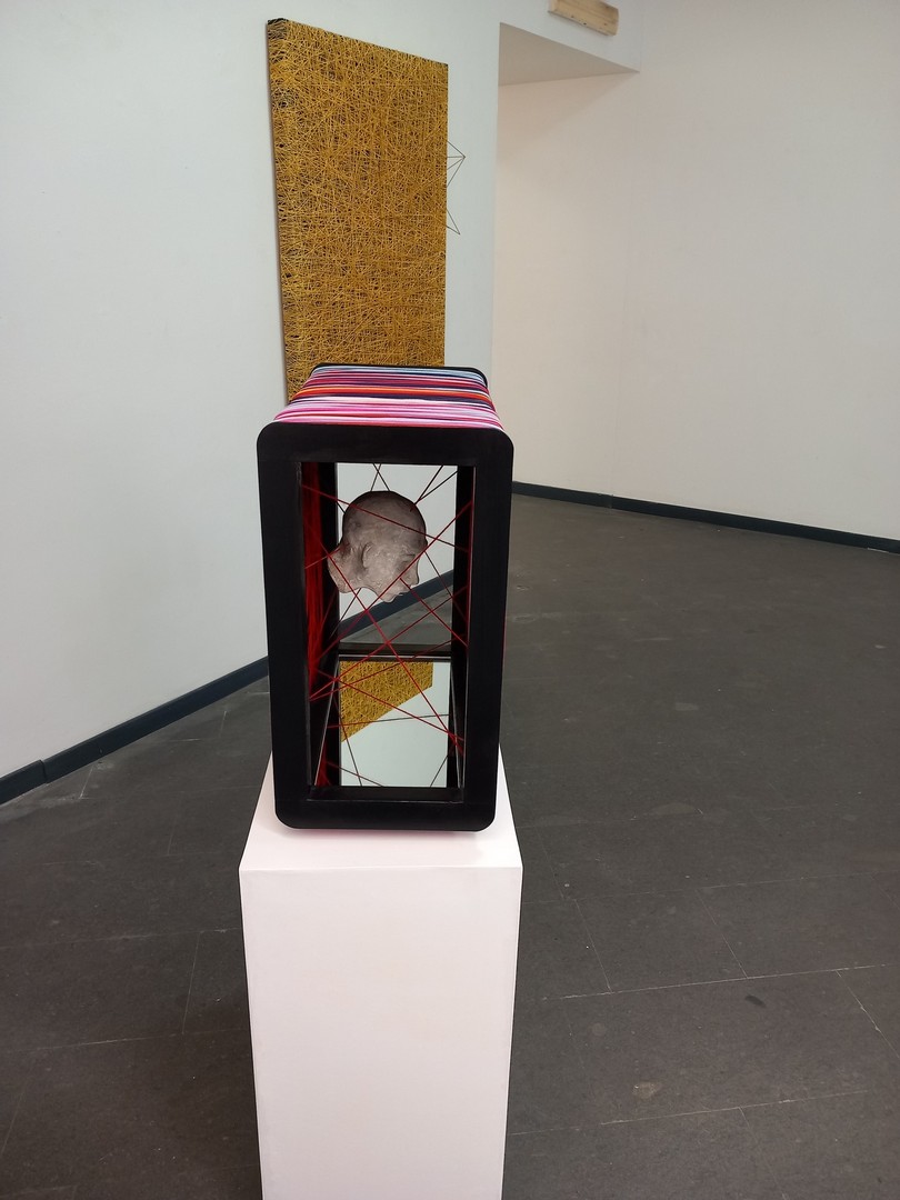 Mixed technique: acrylic, cotton and steel threads, on xps panel and wood