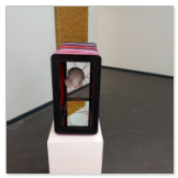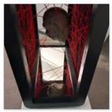 Mixed media: Acrylic threads, mirrors, plastic inserts, acrylic paint, wood, aluminum frame