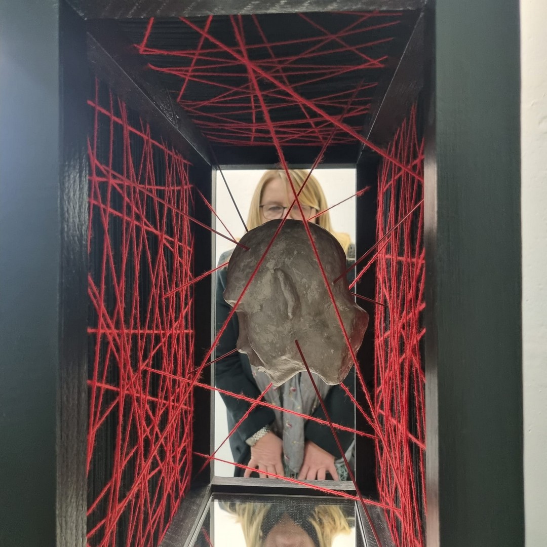 Mixed media: acrylic threads and mirrors on wood