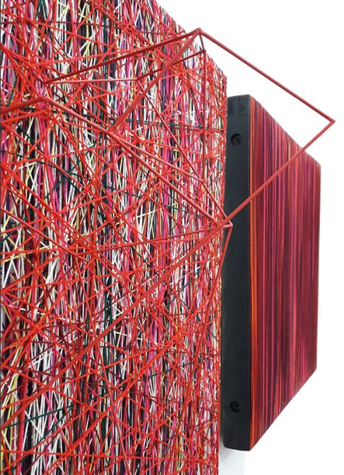 Tecnica mista: fili acrilici e d'acciaio, su legno