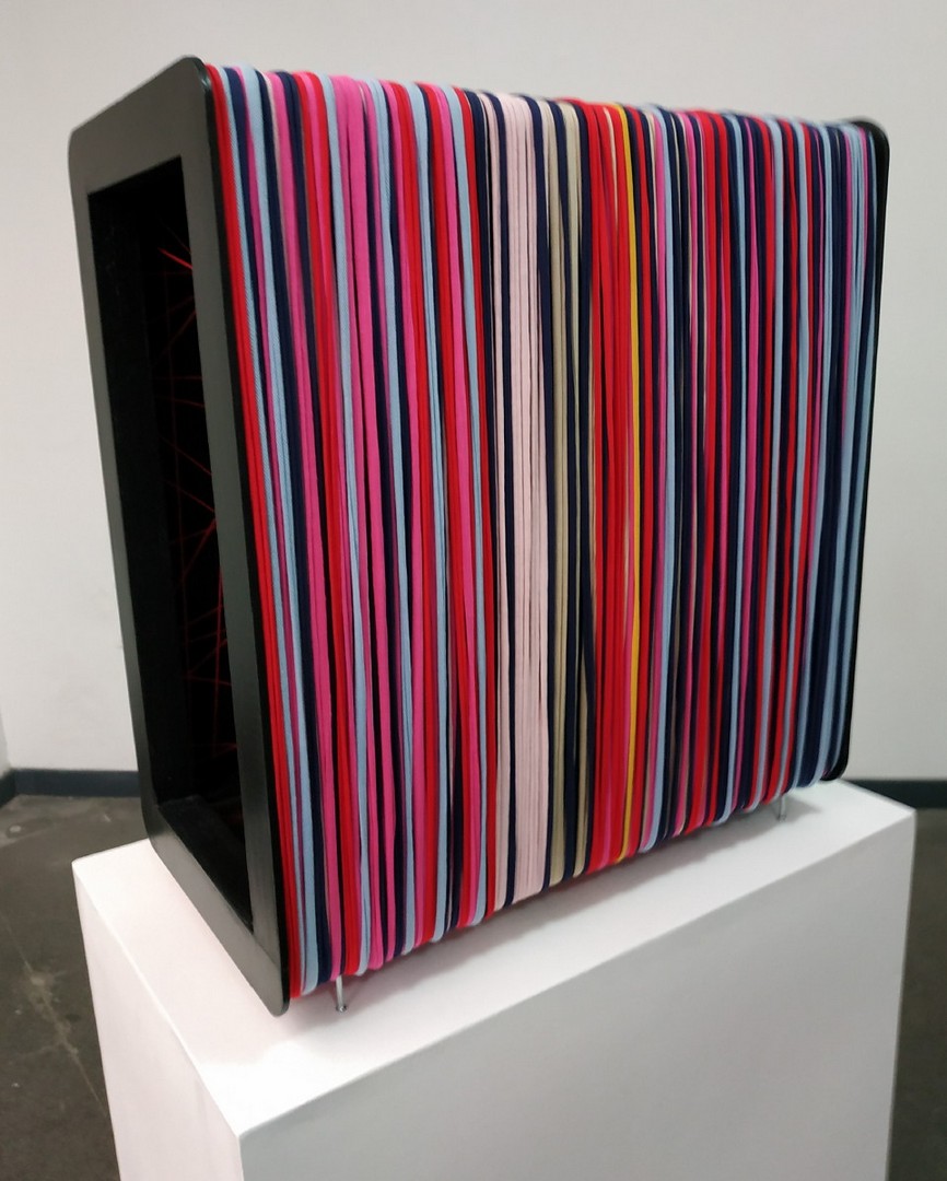Mixed media: acrylic threads, wood